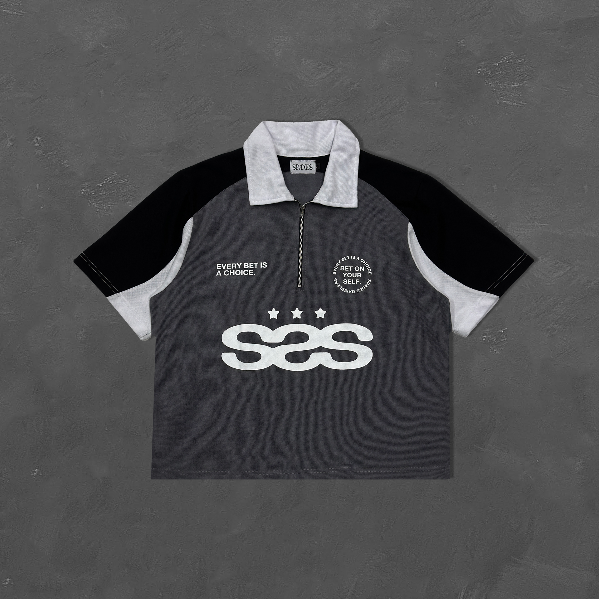 Spades Neutral Stake Boxy Crop Polo Pique